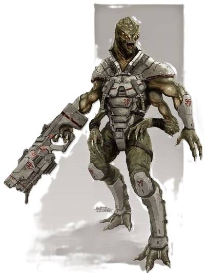 Et c’est alors qu’il vit un Autre s’approcher de lui, en rampant. Il tira une rafale. L’Autre fit ce bruit affreux et étrange qu’ils font tous en mourant et s’immobilisa. Il frissonna en entendant ce râle, et la vue de l’Autre le fit frissonner encore plus. On devait pourtant en prendre l’habitude, à force d’en voir – mais jamais il n’y était arrivé. C’étaient des êtres vraiment trop répugnants, avec deux bras seulement et deux jambes, et une peau d’un blanc écœurant, nue et sans écailles.