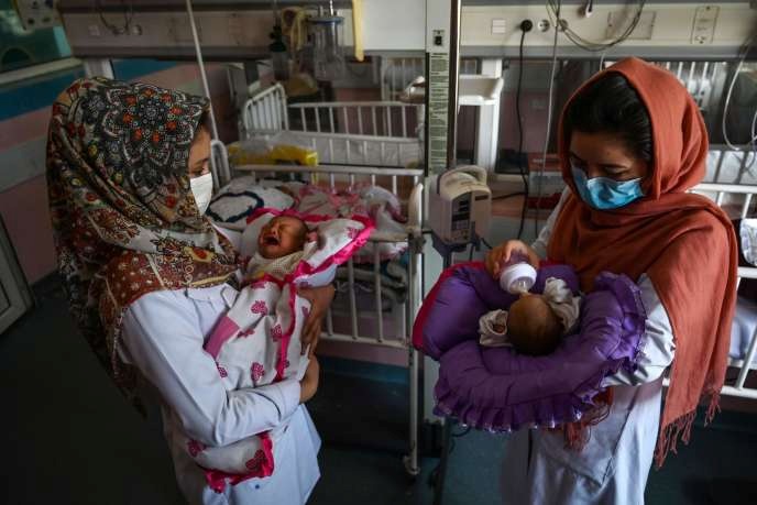 Des infirmières nourrissent des nouveau-nés rescapés, orphelins de l’attaque du 15 mai 2020. WAKIL KOHSAR / AFP